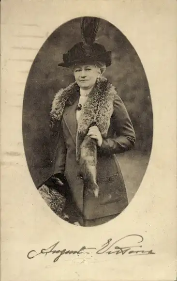 Ak Kaiserin Auguste Viktoria, Standportrait, Fuchspelz