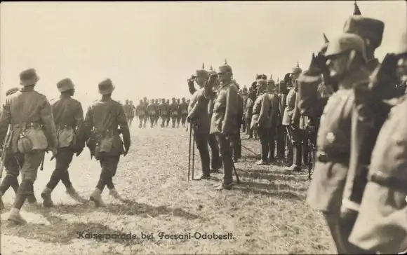 Ak Kaiserparade bei Foscani-Odobesti, Soldaten in Uniformen