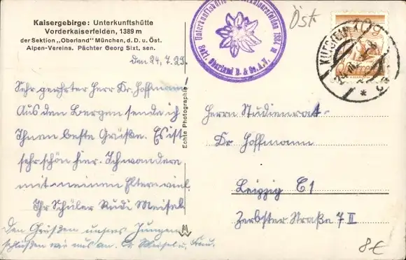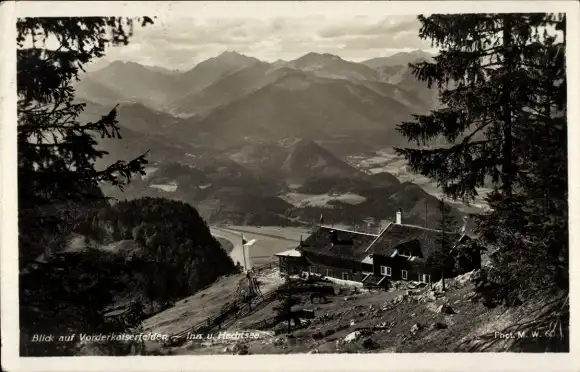 Ak Kaiserthal in Tirol, Unterkunftshütte Vorderkaiserfelden der Sektion Oberland, Berge