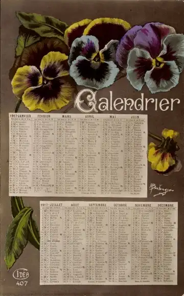Ak Kalender, Stiefmütterchen, Blumen