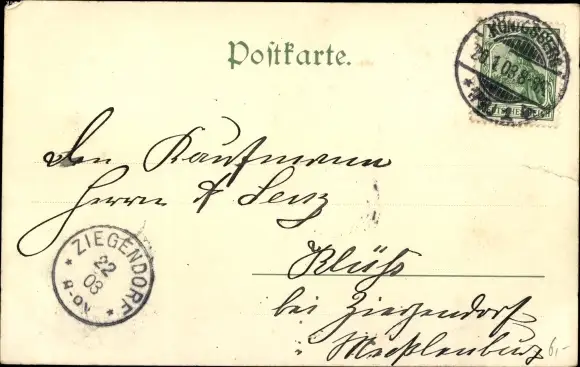 gelaufen 1903, Eckknick rechts oben, sonst guter Zustand
