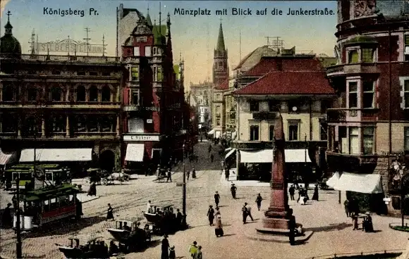 Ak Kaliningrad Königsberg Ostpreußen, Münzplatz, Blick auf Junkerstraße