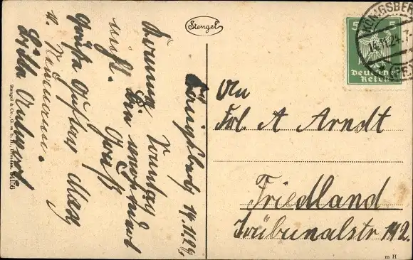 Zustand, siehe Scan, gelaufen, 1924- Stengel 84156 - ca 14 cm X 9 cm