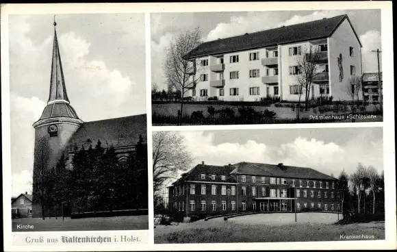 Ak Kaltenkirchen in Holstein, Kirche, Krankenhaus, Prämienhaus Schlesien
