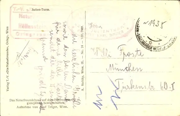 Ak Kaltenleutgeben in Niederösterreich, Höllenstein, Julienturm