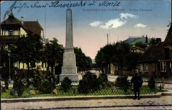 Ak Kaltenweide Elmshorn in Schleswig Holstein, Moltke Denkmal
