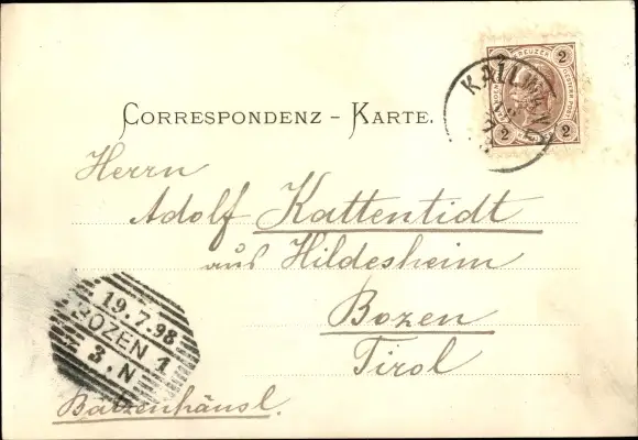 Zustand, siehe Scan, gelaufen, 1898 - ca 14 cm X 9 cm