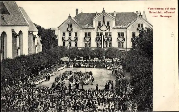 Ak Kamenz in Sachsen, Forstfestzug auf dem Schulplatz, Gesang