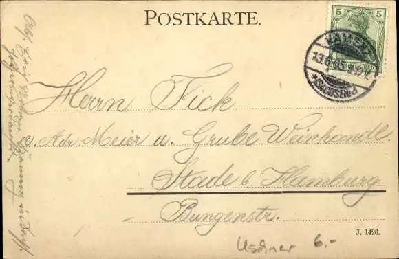 Zustand, siehe Scan, gelaufen, 1905 - Verlag Alfred Uschner, Kamenz - ca 14 cm X 9 cm