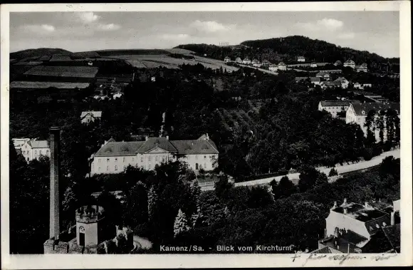 Ak Kamenz in Sachsen, Gesamtansicht, Kirchturm