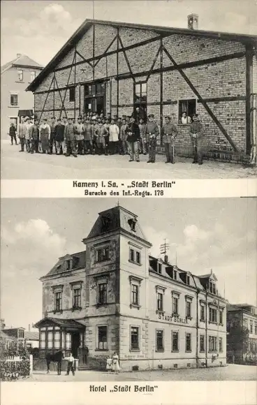 Ak Kamenz in Sachsen, Hotel Stadt Berlin, Baracke des Infanterie-Regiments 178