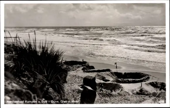 Ak Kampen auf Sylt, Düne, Gras und Meer, Strandburgen
