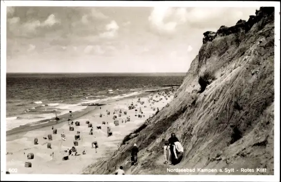Ak Kampen auf Sylt, Rotes Kliff mit Strand