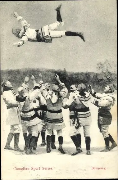 Ak Kanada, Mann wird in die Luft geworfen, Winter