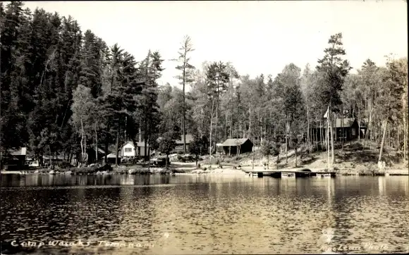 Ak Kanada, Wald, Wasserpartie, Ferienhäuser