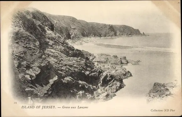 Ak Kanalinsel Jersey, Lanzenschlag, Felsen, Ufer, Abhang