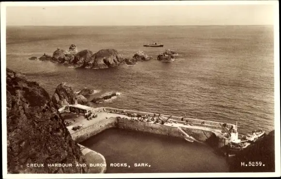 Ak Kanalinsel Sark, Creux Harbour and Burow Rocks, Felsen, Pier, Boote