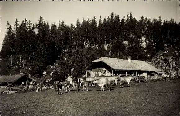 Ak Kandersteg Kanton Bern, Sennerei-Ferienheim, Jugendherberge, Läger Oeschinensee