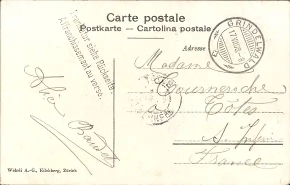 Zustand, siehe Scan, gelaufen, 1908 - ca 14 cm X 9 cm