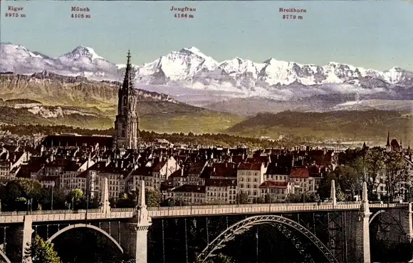 Ak Kanton Bern, Eiger, Mönch, Jungfrau, Breithorn, Stadt