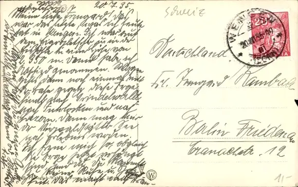 Zustand, siehe Scan, gelaufen, 1935 - ca 14 cm X 9 cm
