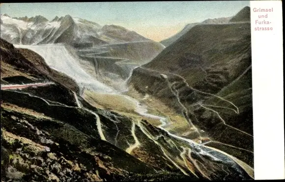 Ak Kanton Bern Schweiz, Grimsel mit Furkastraße