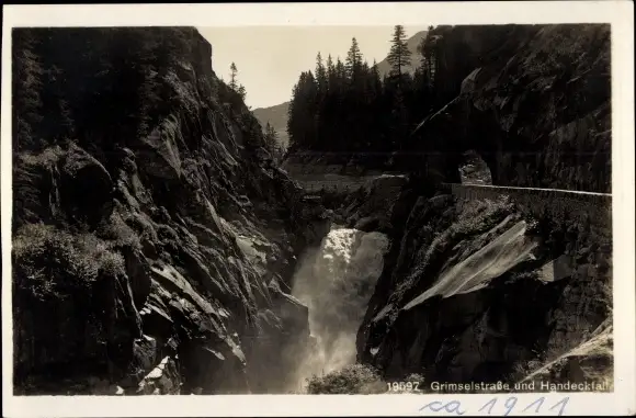 Ak Kanton Bern Schweiz, Grimselstraße und Handeckfall