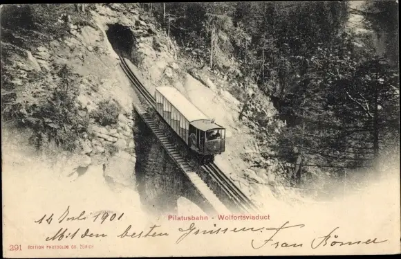 Ak Kanton Luzern Schweiz, Pilatusbahn, Zahnradbahn, Wolfortsviadukt
