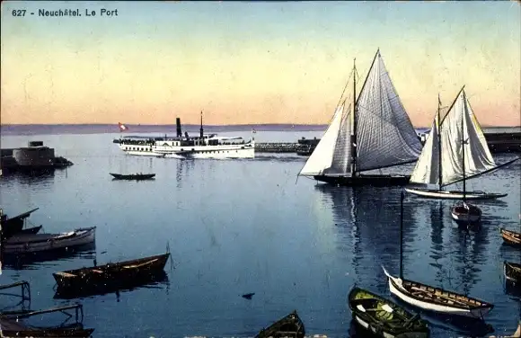Ak Kanton Neuenburg Neuenburg, Hafenbild
