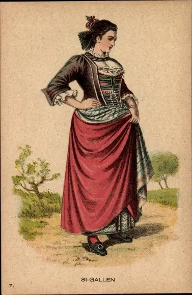 Ak Kanton St. Gallen, Frau in schweizerischer Tracht