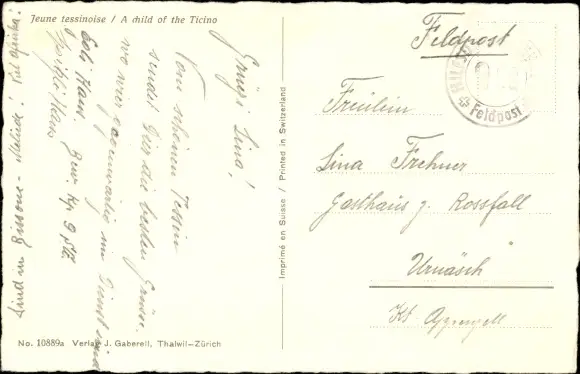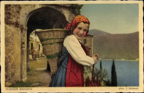 Ak Kanton Tessin, Mädchen mit Rückentrage in schweizer Tracht