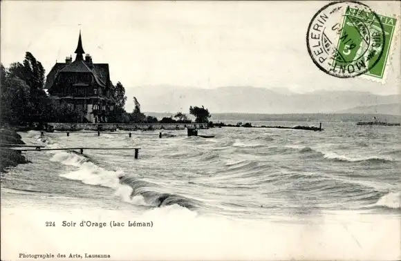 Ak Kanton Waadt Schweiz, Genfersee, stürmischer Abend