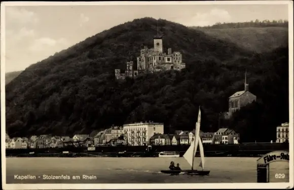 Ak Kapellen Stolzenfels Koblenz am Rhein, Schloss, Segelboot