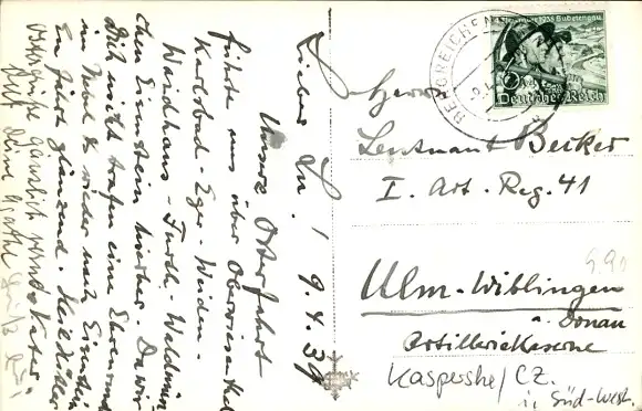 Zustand, siehe Scan, gelaufen, 1939 - ca 14 cm X 9 cm