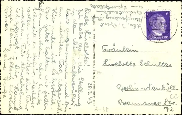 Zustand, siehe Scan, gelaufen, 1943 - ca 14 cm X 9 cm