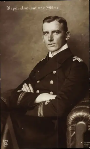 Ak Kapitänleutnant Hellmuth von Mücke, Sitzportrait in Uniform