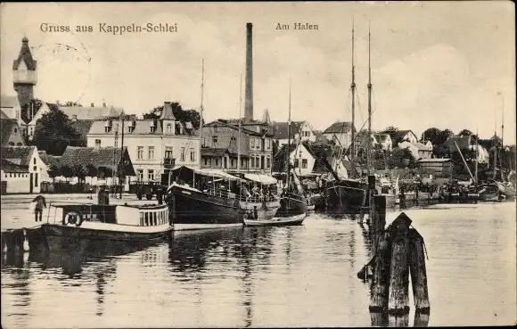 Ansichtskarte, Postkarte, Hafen, Schiffe, Boote, Dampfer, Boot