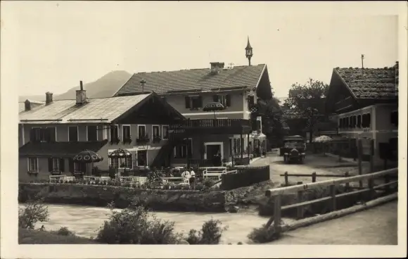 Ak Kaprun in Salzburg, Blick auf Orglers Gasthof Neuwirt, Flusspartie