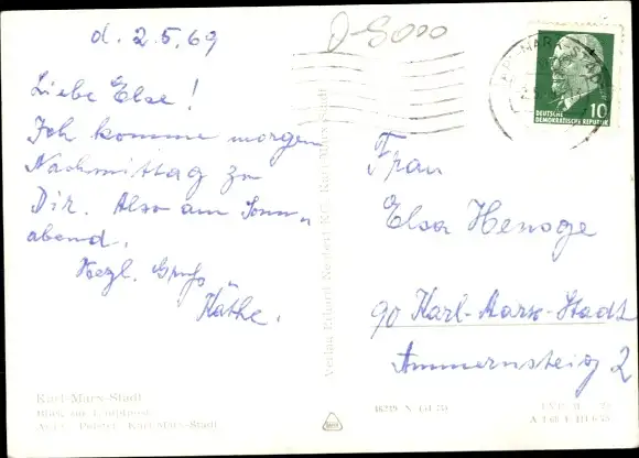 Ak Karl Marx Stadt Chemnitz in Sachsen, Blick zur Hauptpost