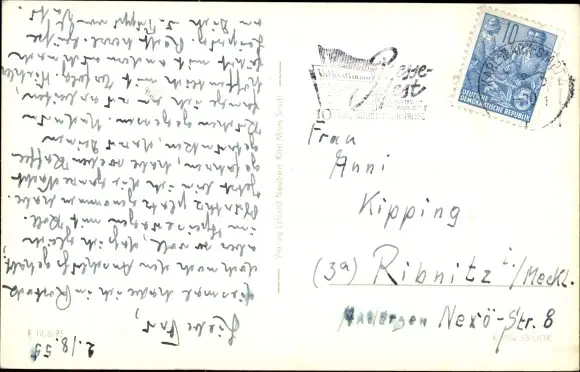 Zustand, siehe Scan, gelaufen, 1955 - ca 14 cm X 9 cm