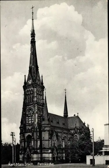Ak Karl Marx Stadt Chemnitz in Sachsen, Petrikirche, Außenansicht
