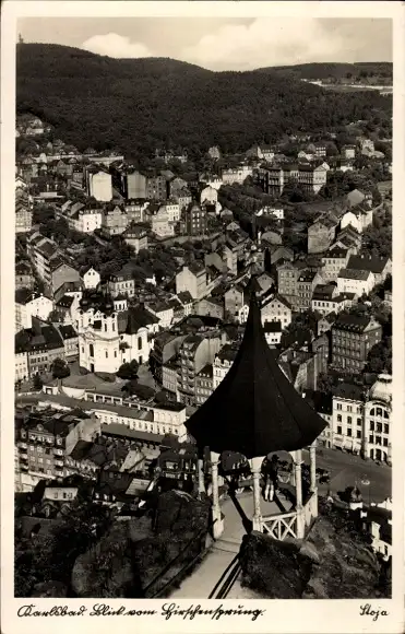 Ak Karlovy Vary Karlsbad Stadt, Blick vom Hirschensprung