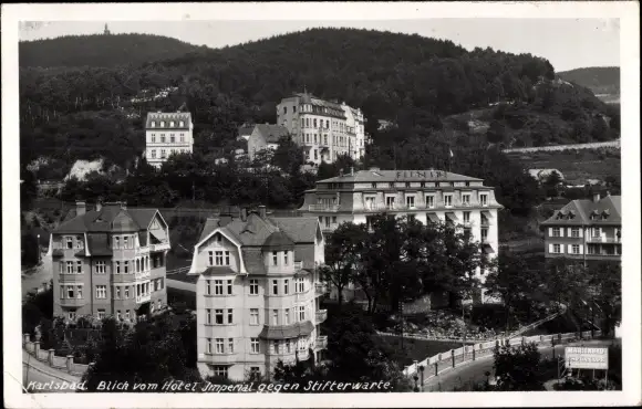 Ak Karlovy Vary Karlsbad Stadt, Blick vom Hotel Imperial, Stifterwarte
