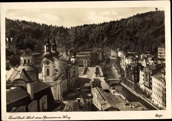 Ak Karlovy Vary Karlsbad Stadt, Blick vom Panoramaweg