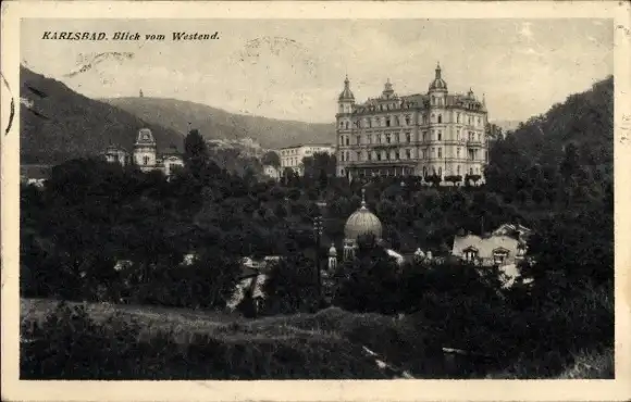 Ak Karlovy Vary Karlsbad Stadt, Blick vom Westend
