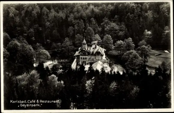 Ak Karlovy Vary Karlsbad Stadt, Café-Restaurant Geysirpark