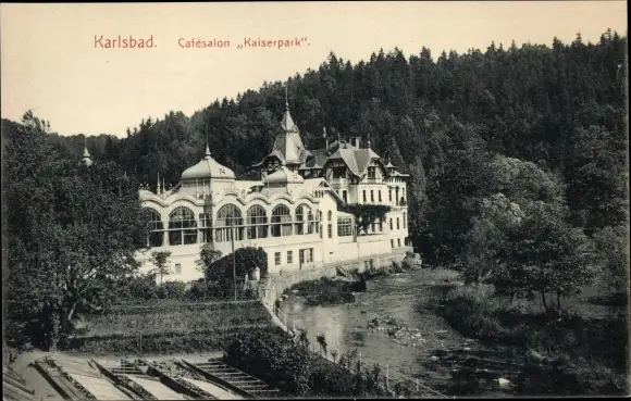 Ak Karlovy Vary Karlsbad Stadt, Cafésalon Kaiserpark