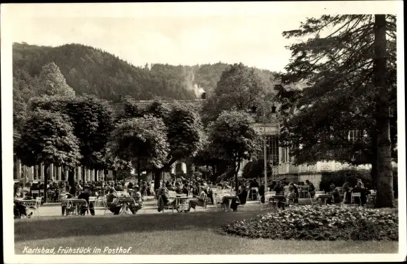 Ak Karlovy Vary Karlsbad Stadt, Frühstück im Posthof