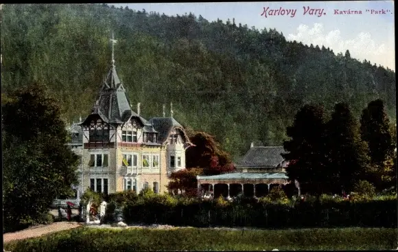 Ak Karlovy Vary Karlsbad Stadt, Kavarna Park