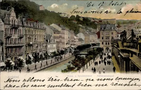 Ak Karlovy Vary Karlsbad Stadt, Kreu- und Sprudelstraße, Mühlbrunnenqual